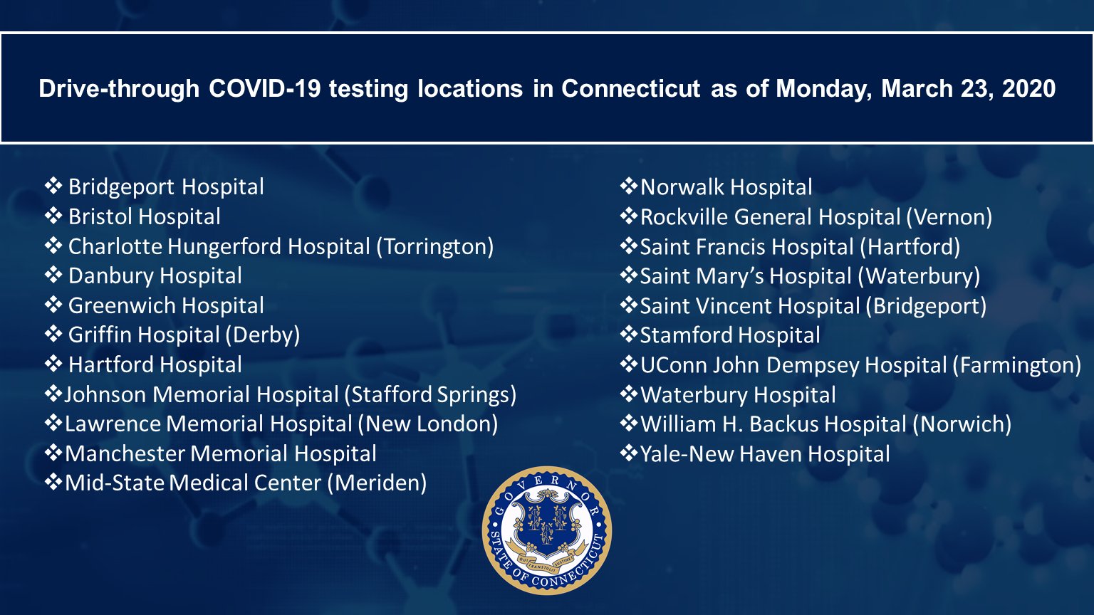 Governor Ned Lamont On Twitter Update Five More Drive Through Covid19 Testing Locations Have Been Added In Connecticut Griffinhospital Norwalkhospital Rockvillegeneralhospital Uconnhealth Backushospital There Are Now 21 Of These Drive
